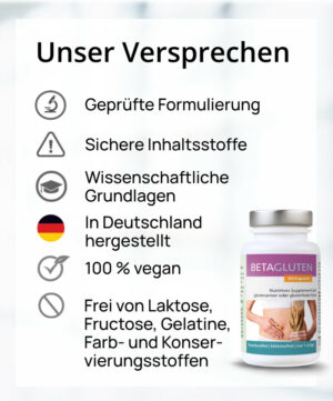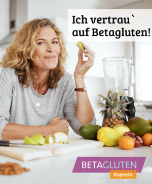 Verzehrsempfehlung: 1-mal täglich 1 Kapsel unzerkaut mit ausreichend Flüssigkeit zu den Mahlzeiten einnehmen. Eine langfristige Verwendung von Betagluten wird empfohlen.