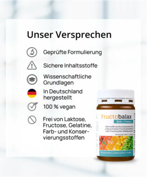 Verzehrsempfehlung: 1-mal täglich eine Kapsel unzerkaut mit ausreichend Flüssigkeit zu den Mahlzeiten einnehmen. Eine langfristige Verwendung von Fructobalax wird empfohlen.